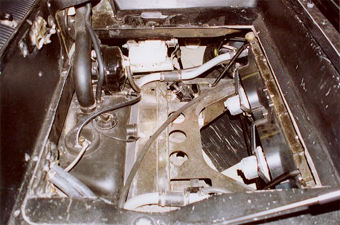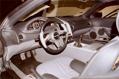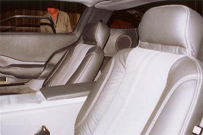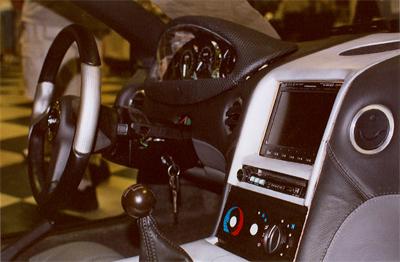 "The center console boasts a new Alpine based LCD center for radio, navigation, etc. The vents have been repositioned for more optimal use. Press here to see the SS frame being used in this car with the added storage room in the trunk."